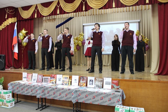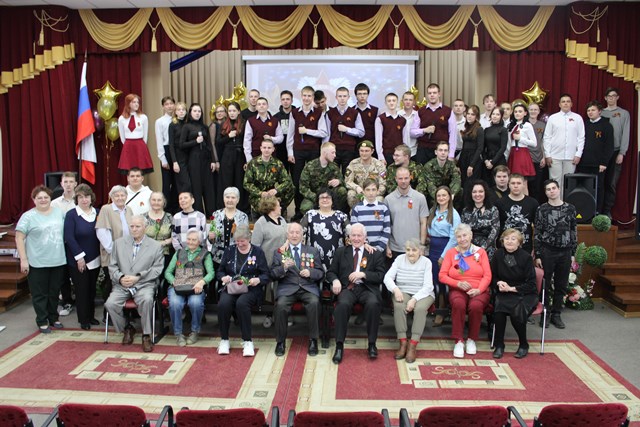 На торжественном концерте в актовом зале, который состоялся после открытия стелы прозвучали песни о Великой Отечественной войне в исполнении студентов нашего колледжа – участников театральной, вокальной и хореографической студий. Был показан фильм, снятый художественными коллективами нашего колледжа «Мы помним ваши имена» - о людях, которые были участниками и свидетелями Великой Отечественной и всю жизнь проработали в нашем учебном заведении. Во время исполнения песни «Бессмертный полк» «Знаменная группа» вместе с командиром Мироновым Георгием и руководителем Румянцевой Ольгой Александровной внесли портреты «Бессмертного полка» нашего колледжа.