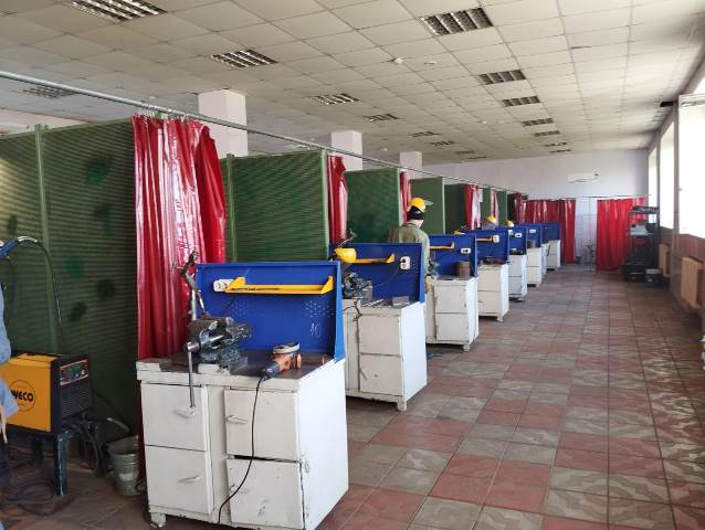 Студенты выполняют задание КОД 15.01.05-2-2024 базового уровня, направления «Сварщик ручной дуговой сварки плавящимся покрытым электродом». Время на выполнение задания отводится 2 часа 30 минут. Задание состоит из двух контрольных образцов, стыкового соединения труб Ø159х6 мм и таврового соединения размером 200х100х10 мм. В задание входит выполнение таких операций, как: разметка КСС, зачистка околошовной зоны, сборка КСС на прихваточные швы, сварка КСС. По итогам выполненных работ экспертная группа приступит к оцениванию сварных швов.