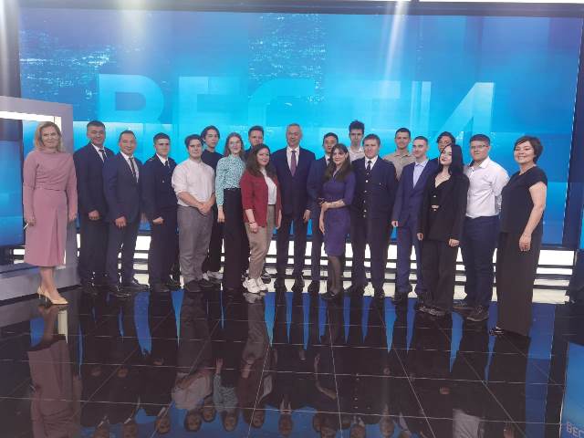 В качестве гостей эфира в студию среди других студентов колледжей – победителей и призёров регионального чемпионата, итогового этапа (этого и прошлого года) и финала прошлого года – представителей разных профессий, были приглашены студенты нашего колледжа: Миронов Сергей, Офицын Егор - компетенция «Роботизированная сварка», Морковин Глеб, компетенция «Эксплуатация сервисных роботов».