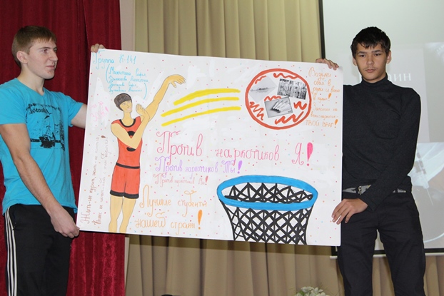 В нашем техникуме проходит декада «Мы за здоровый образ жизни». Сегодня в рамках этой декады в актовом зале состоялась традиционная защита плакатов. Студенты подошли к этому мероприятию творчески и проявили все свои таланты: и поэтические, и музыкальные, и художественные. В конкурсе приняли участие 11 групп, выступления которых оценивало жюри. Чтобы выявить победителей, члены жюри оценивали номера по нескольким критериям: соответствие теме, художественное оформление, артистизм, содержание защиты, массовость.