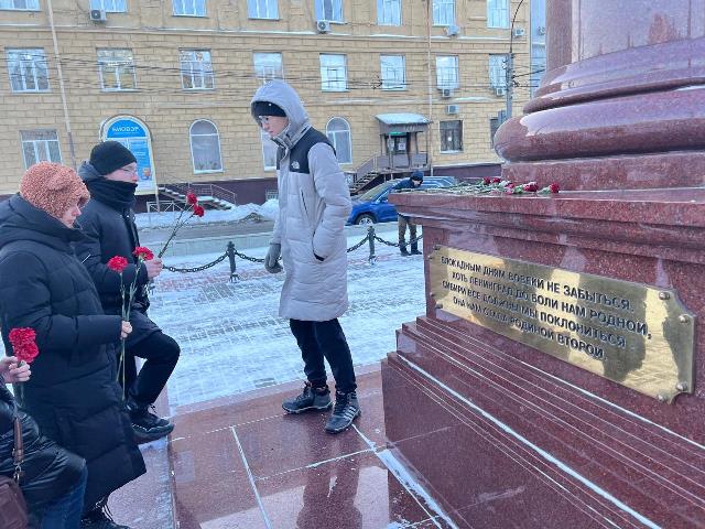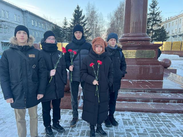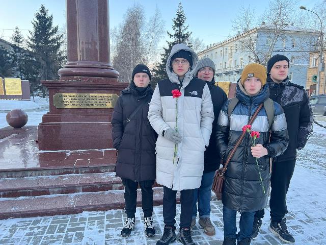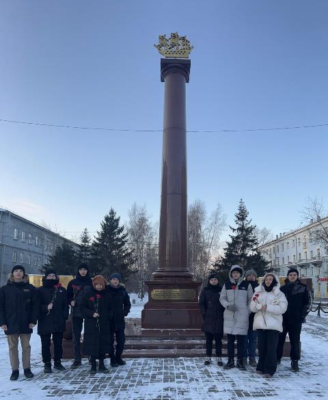 В рамках Декады, посвященной Дню полного освобождения Ленинграда от фашистской блокады студенты Новосибирского технического колледжа им. А.И.Покрышкина вместе с советником директора по воспитанию Степановой Анной Витальевной посетили площадь Пименова, где установлена Стела, посвященная трудовому подвигу ленинградцев, эвакуированных в Новосибирск в 1941-1943 годах.