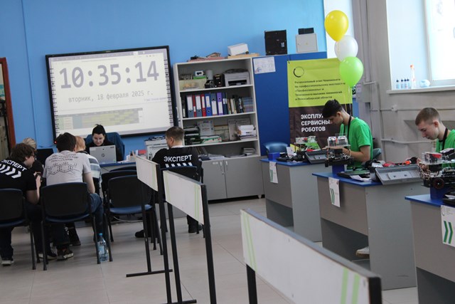 На площадке Новосибирского технического колледжа им. А. И. Покрышкина в компетенции «Эксплуатация сервисных роботов» второй конкурсный день. Сегодня участникам предстоит выполнить работу по нескольким модулям.