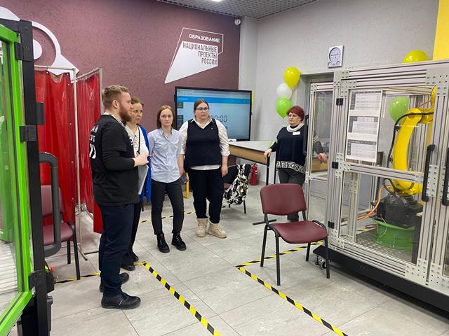 После этого была проведена экскурсия на площадки по компетенциям: «Сварочные технологии», «Промышленная робототехника», «Эксплуатация сервисных роботов», «Мехатроника».