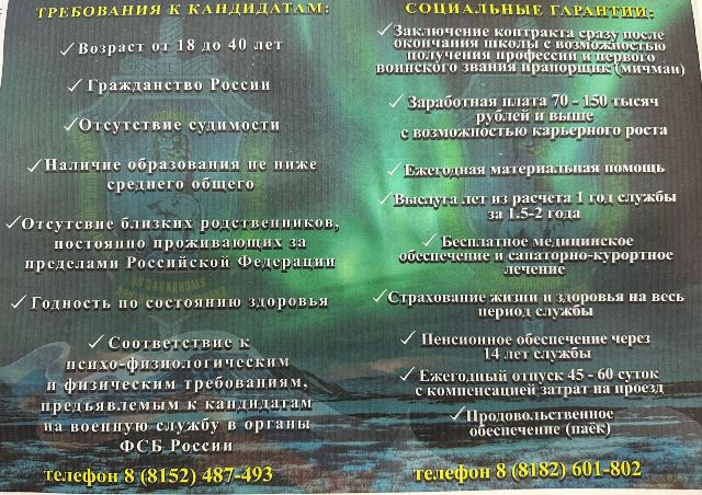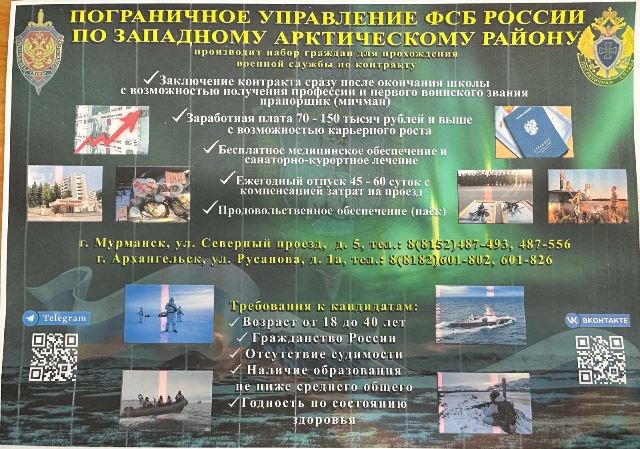 Информация – Управление ФСБ России по Западному Арктическому району