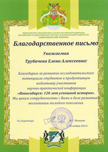 Вчера, 28 ноября, студенты нашего техникума приняли участие в студенческой научно- практической конференции «Новосибирск - 120 лет успешной истории», которую организовал и провел Новосибирский филиал Российского государственного торгово- экономического университета. На пленарном заседании кандидат исторических наук Сумин Владимир Анатольевич выступил с интересным, познавательным докладом «Сохранение культурного наследия Новосибирской области».