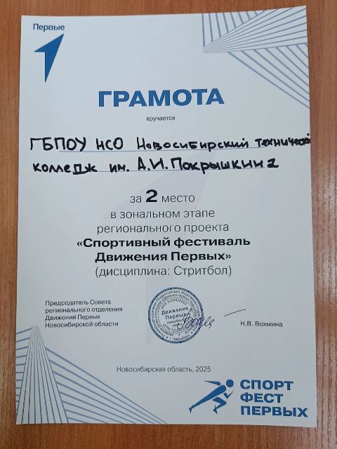 11 апреля прошли соревнования по стритболу. Команда Новосибирского технического колледжа заняла 2 место в зональном этапе регионального проекта Спортивный фестиваль «Движение Первых» (дисциплина: стритбол).