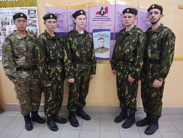 Право возложить цветы к бюстам героев Великой Отечественной войны и мемориальным доскам выпускников колледжа на Аллее Славы, было предоставлено участникам проекта «Знаменная группа».