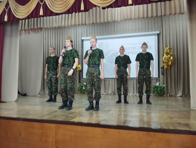 Сегодня, какие бы мы песни не пели, какие бы стихи не читали, мы все время будем думать о тех, кто сегодня с оружием в руках стоит на защите нашей Родины, кто продолжает дело своих отцов и дедов - бьется с фашизмом сегодня. Мы желаем нашим бойцам, которые находятся не передовой, только победы и живыми вернуться домой. И как сказал Юрий Левитан 22 июня 1941 года: «Наше дело правое, враг будет разбит, победа будет за нами. Завершилось мероприятие исполнением песни «Поклонимся великим тем годам!»