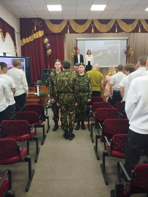 Открытие линейки прошло под внос Флага Российской Федерации. Право внести флаг Российской Федерации было предоставлено знаменной группе колледжа имени Дениса Хамкова, кавалера Ордена Мужества.
