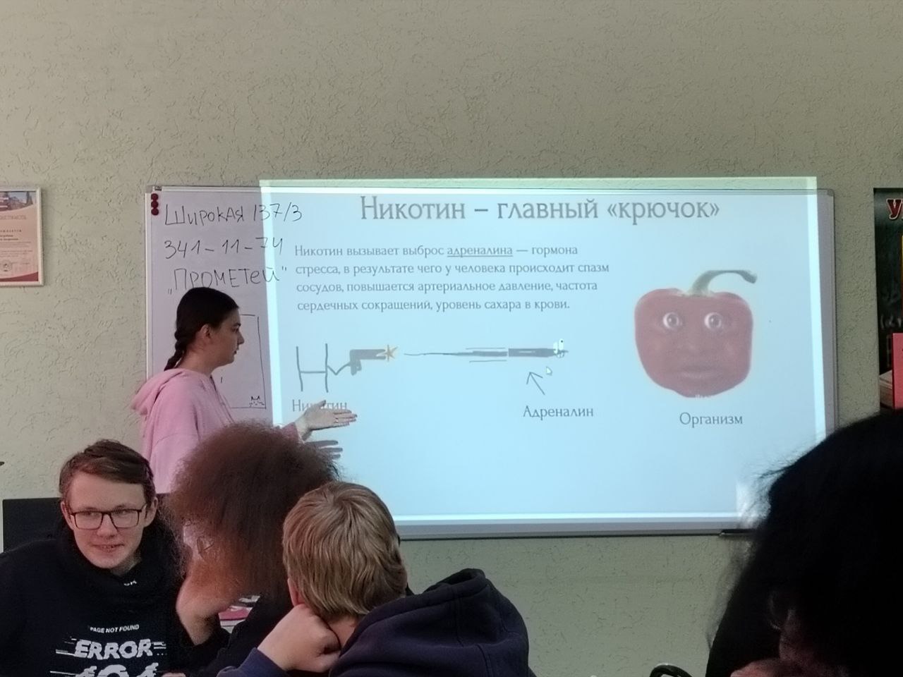 Ребята не просто слушали лекцию, а сами в процессе игры рассказывали и аргументировали, почему так опасна зависимость от вейпов. В аудитории было шумно и интересно, все были включены в процесс.