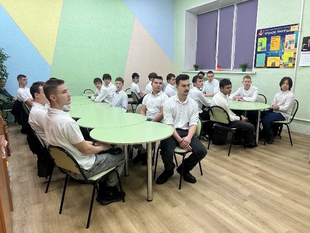 В это же время для студентов первого курса в актовом зале колледжа преподаватель-организатор Об и ЗР Румянцева Ольга Александровна провела «Разговоры о важном». Занятие началось с вноса Флага Российской Федерации участниками Знаменной группы имени выпускника, ефрейтора Дениса Васильевича Хамкова, кавалера ордена Мужества, погибшего на СВО. Участники Знаменной группы возложили цветы к бюстам Героев Советского Союза, расположенным на территории парка «Патриот». Студенты совместно с Ольгой Александровной порассуждали о значении подвига в жизни человека и общества, о моральных и нравственных качествах настоящих героев нашей страны.