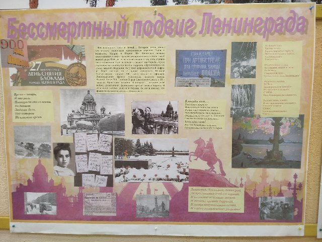 В музее колледжа есть экспозиция, посвященная этому героическому городу. В 1942 году из блокадного Ленинграда в Новосибирск были эвакуированы учащиеся ремесленных училищ. Многие из них были определены в ремесленное училище №1 ( так раньше назывался наш колледж), здесь они жили, учились и работали для фронта, выпуская военную продукцию. Так что тема блокадного Ленинграда очень близка нашим студентам.