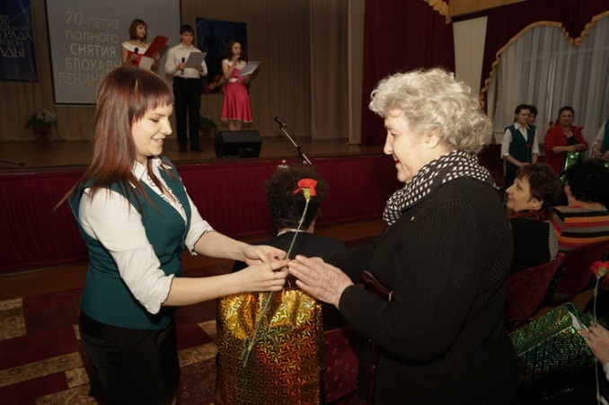 Атмосфера мероприятия была очень душевной и трогательной, со сцены звучали песни в исполнении ансамблей «Калинушка» и «Настроение». Слова благодарности блокадникам от студентов нашего учебного заведения выразил Роман Ковтун (гр. Э-221). А лучшие студенты возложили цветы к мемориальным доскам А.И. Покрышкина и К.Н. Зандина.