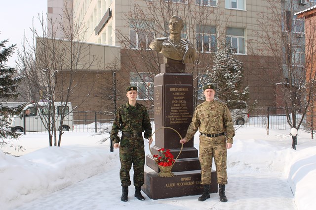 Право возложить цветы к Мемориальной доске Константина Николаевича Зандина и бюсту трижды Героя Советского Союза маршала авиации Александра Ивановича Покрышкина было предоставлено Знаменной группе колледжа.