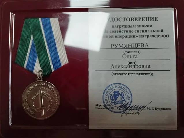 9 февраля 2026 года руководитель ВПК «Крылатая гвардия», преподаватель Ольга Александровна Румянцева в числе еще 15 волонтеров группы «Комсомольцы фронту» была награждена наградным знаком «За содействие специальной военной операции» от мэрии г. Новосибирска. Награждение проводилось в администрации Ленинского района в торжественной обстановке.
