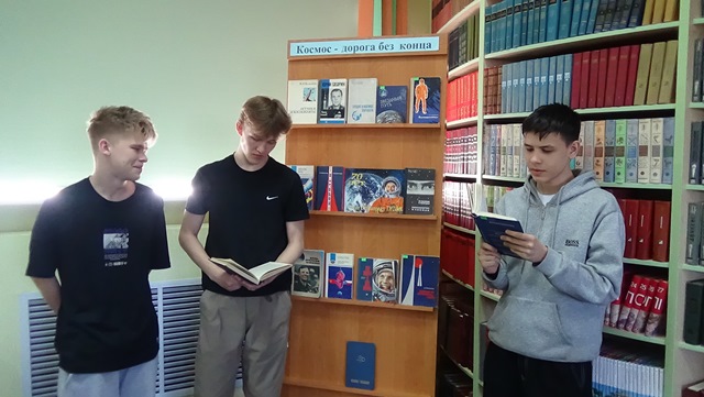 Информационным сопровождением мероприятия стала книжно-иллюстративная выставка «Космос – дорога без конца», на которой представлены книги из фонда библиотеки и публикации из печатных изданий о космосе и космонавтах.