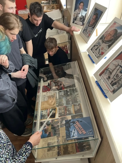 В рамках Недели космонавтики в музее А.И.Покрышкина в колледже прошли мероприятия, посвященные нашим космонавтам. Музейный урок «Их именами называют звезды» прошел в группе АТ-281.
