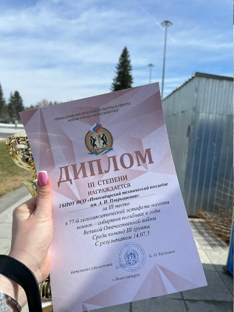 КОМАНДА КОЛЛЕДЖА – БРОНЗОВЫЕ ПРИЗЕРЫ 77-ОЙ ЛЕГКОАТЛЕТИЧЕСКОЙ ЭСТАФЕТЕ ПАМЯТИ ВОИНОВ-СИБИРЯКОВ, ПОГИБШИХ В ГОДЫ ВЕЛИКОЙ ОТЕЧЕСТВЕННОЙ ВОЙНЫ