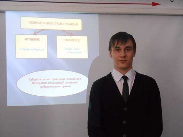 В преддверии выборов мэра г.Новосибирска в группах проходят классные часы. Сегодня такое мероприятие прошло в группе Э-121. Куратор Ирина Анатольевна Жилякова рассказала студентам о важности выборов, о том, кто имеет право участвовать в выборах, как проходит процесс выборной компании, о периодичности выборов, о правах избирателей. Первокурсники выступили с докладами об истории выборов. Многие ребята высказывали своё мнение, спорили, отстаивали свою точку зрения. Тема выборов, будущего нашего города не оставила равнодушными никого. Студенты понимают, что от их выбора зависит многое и именно молодёжи строить будущее.