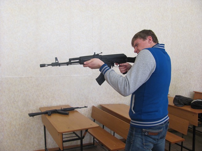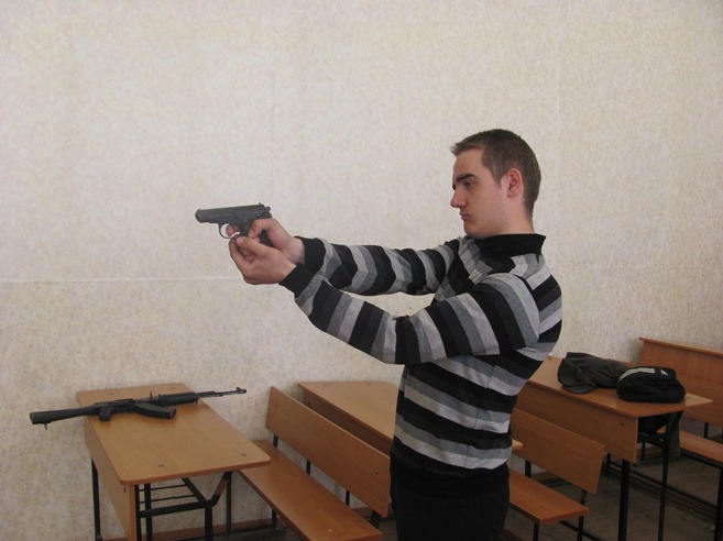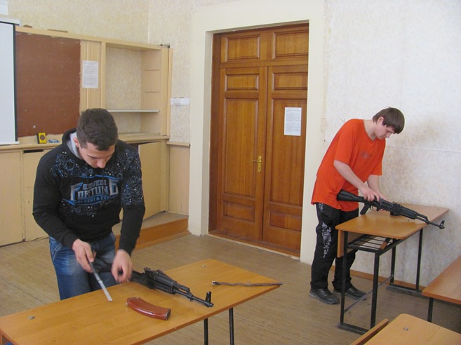 В среду, 23 апреля, проводилась сдача нормативов по физической подготовке, предусмотренных для призывников. Юноши сдавали нормативы по подтягиванию, прыжкам с места, бегу на 100 метров. После этого состоялись занятия по огневой подготовке - разборке и сборке автомата Калашникова (все успешно справились с выполнением данного норматива). Все показали хорошую стрельбу в лазерном тире из пистолета Макарова и автомата Калашникова. Были проведены также занятия по ЗОМП (защите от оружия массового поражения) с надеванием ОЗК (общевойскового защитного комплекта).
