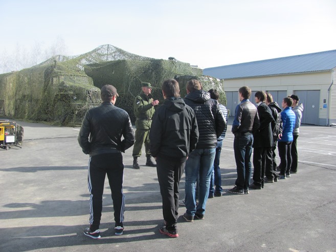 В последний день сборов, 25 апреля, в пятницу, мы ездили с ребятами Выезд в отдельный батальон связи - войсковую часть № 3698. Студенты ознакомились с жизнью и бытом военнослужащих по призыву и по контракту. Допризывники побывали на контрольно-пропускном пункте, в штабе части, казарме, где живут военнослужащие, бане, столовой. Ознакомились с боевой и специальной техникой, стоящей на вооружении части. Офицеры и прапорщики ответили на все вопросы, касающиеся несения военной службы. После посещения части студенты выразили единодушное мнение, что поездка и все виденное им понравилось. Самое главное – непонятных вопросов, связанных со службой в армии для наших парней, по их мнению, теперь не осталось!