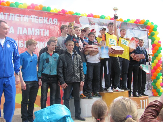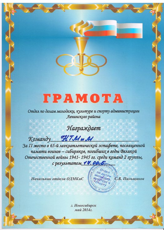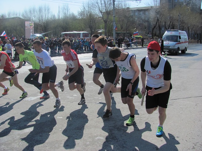 1 мая команда юношей нашего техникума приняла участие в 65-й легкоатлетической эстафете, посвящённой памяти воинов-сибиряков, погибших в годы Великой Отечественной войны. Забег проходил по центральной улице Ленинского района – улице Станиславского. В эстафете участвовали школьники и студенты учебных заведений Ленинского района г. Новосибирска. Наши ребята на всех этапах бежали очень хорошо и в результате команда нашего техникума заняла: