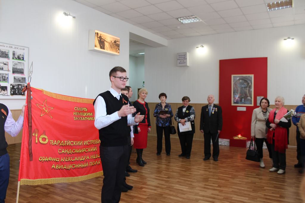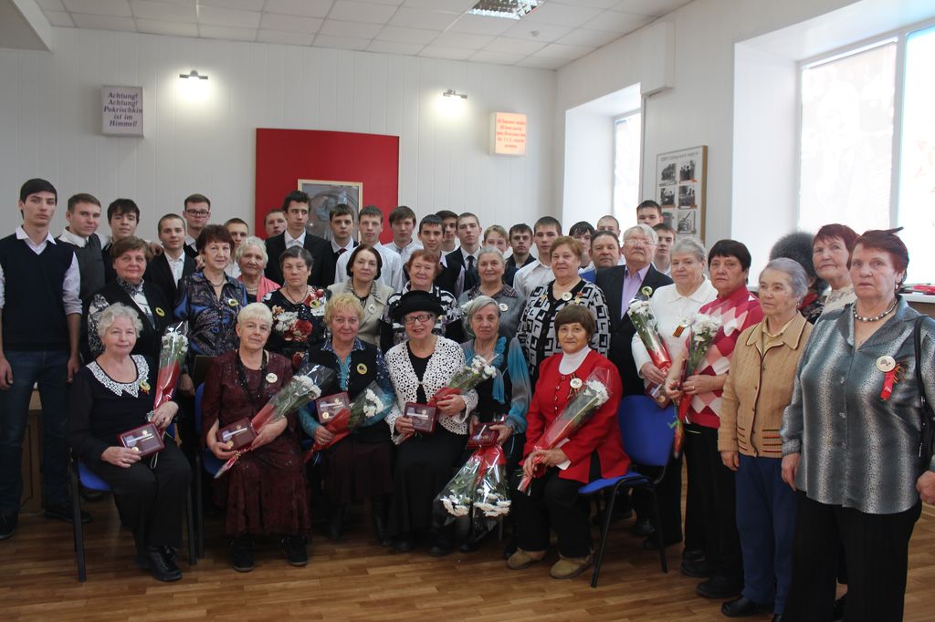 В рамках реализации Государственной программы «Патриотическое воспитание граждан Российской Федерации на 2010-2015 год», в Новосибирском техническом колледже им. А.И.Покрышкина продолжаются мероприятия, посвященные 70-летию Победы в Великой Отечественной войне. 18 декабря в гостях у студентов колледжа были ветераны – члены областной общественной организации «Эхо». Эта организация объединяет тех, чьи отцы погибли на фронтах Великой Отечественной войны. Главная задача организации «Эхо» - увековечить память о воинах – сибиряках, павших за свободу и независимость нашей Родины. На встрече ветеранов со студентами присутствовал заместитель начальника управления общественно-политических связей министерства региональной политики Новосибирской области Савин Олег Вячеславович, он вручил активистам организации «Эхо» медали А.И.Покрышкина.18 ветеранов были удостоены этой почетной награды Новосибирской области, за выдающиеся заслуги в деле патриотического воспитания молодежи. Очень символично, что награждение проходило в музее А.И.Покрышкина. С поздравлением перед ветеранами выступил студент второго курса - Бахарев Владислав, он пообещал, что студенты Новосибирского технического колледжа им. А.И.Покрышкина достойно будут нести эстафету памяти о подвиге нашего народа в годы Великой Отечественной войны.