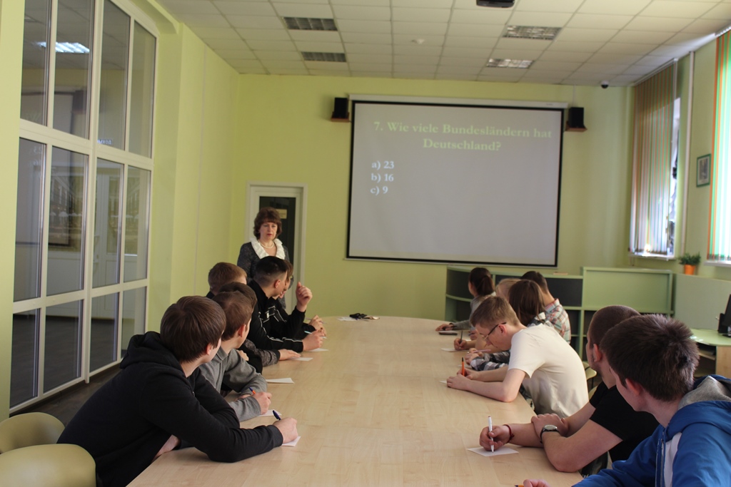 6 апреля в рамках недели иностранных языков, в читальном зале библиотеки состоялась «Викторина по страноведению» для студентов 2 курса, изучающих немецкий язык.