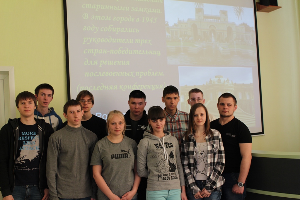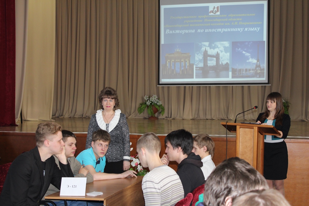 7 апреля в актовом зале собрались 6 команд первого курса: С-111, С-112, М -151, К-141, Э-121, ТГ-191. Команды с большим интересом соревновались в области знания особенностей народов, достопримечательностей, традиций стран изучаемых языков. Викторина состояла из 6 раундов: географического, исторического, литературного, изобретательного, искусствоведческого, раунд для гурманов, конкурса капитанов.