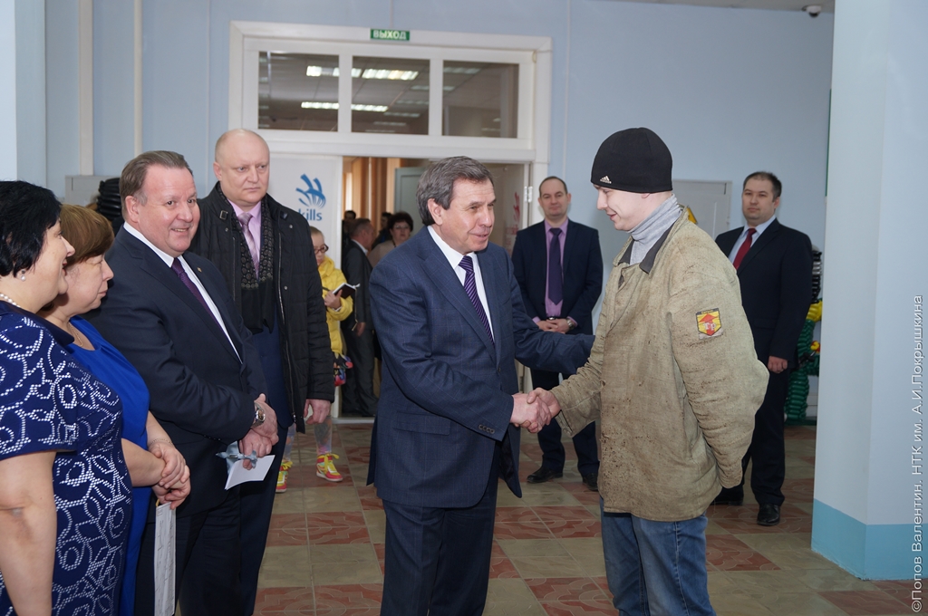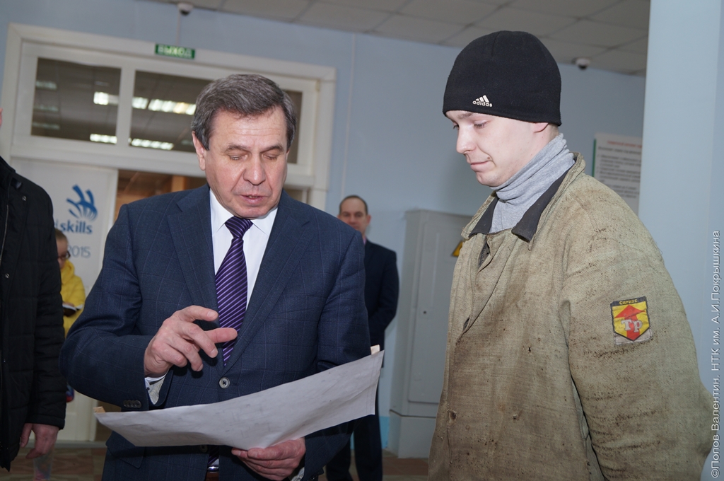 Заканчивая визит, Губернатор проходил через сварочную мастерскую, где в это время занимались студенты, в числе которых был и чемпион Сибирского полуфинала WorldSkills – Федор Яремко. Владимир Филиппович коротко побеседовал с Федором, расспросил о прошедшем полуфинале и пожелал удачи в предстоящем национальном финале WorldSkills Russia.