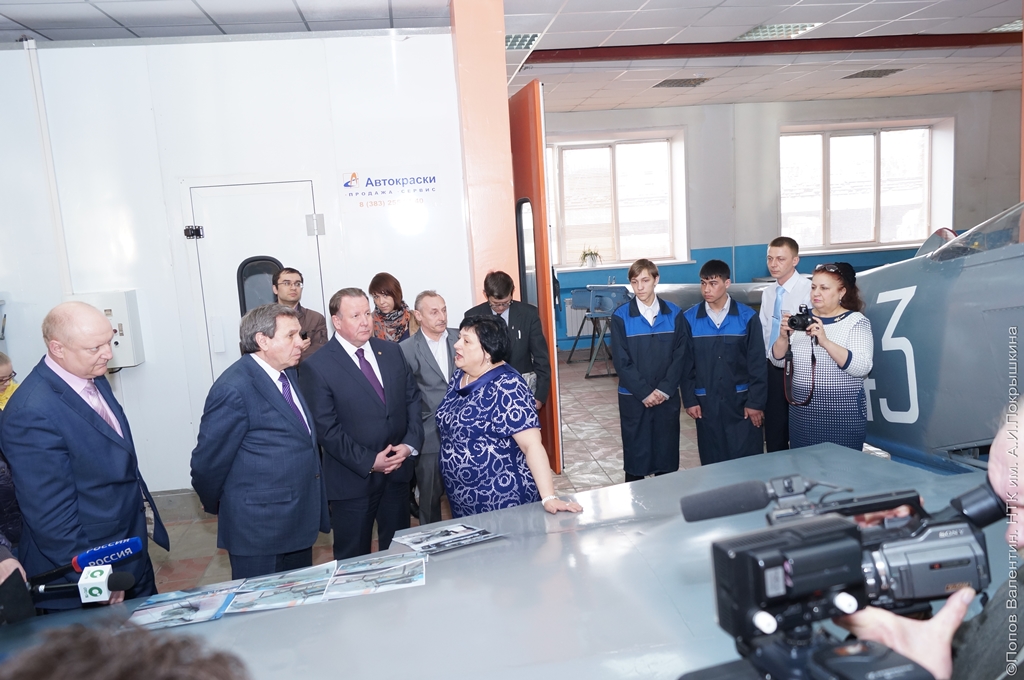 В канун открытия мемориала Александра Ивановича Покрышкина и установки во дворе Новосибирского технического колледжа им.А.И.Покрышкина самолета ЯК-9, отреставрированного силами студентов и мастеров производственного обучения, с целью проверки степени готовности проекта, сегодня колледж посетили Губернатор Новосибирской области Владимир Филиппович Городецкий. В сопровождении министра труда, занятости и трудовых ресурсов Новосибирской области Игоря Викторовича Шмидта, главы Ленинского района города Олега Петровича Клемешова и заместителя главы Ленского района Вадима Владимировича Гертера. Владимир Филиппович, прошел по мастерским колледжа, осмотрел самолет и его импровизированный ангар, функции которого на себя взял ресурсный центр «Машиностроитель». Губернатор дал высокую оценку проведенной работе и мастерству наших реставраторов.