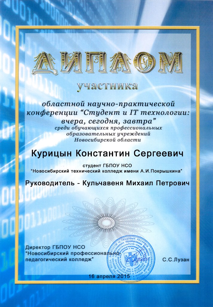 16 апреля 2015 года на базе ГБПОУ НСО «Новосибирский профессионально-педагогический колледж» прошла областная конференция "Студент и IT-технологии: вчера, сегодня, завтра" среди обучающихся профессиональных образовательных учреждений Новосибирской области.