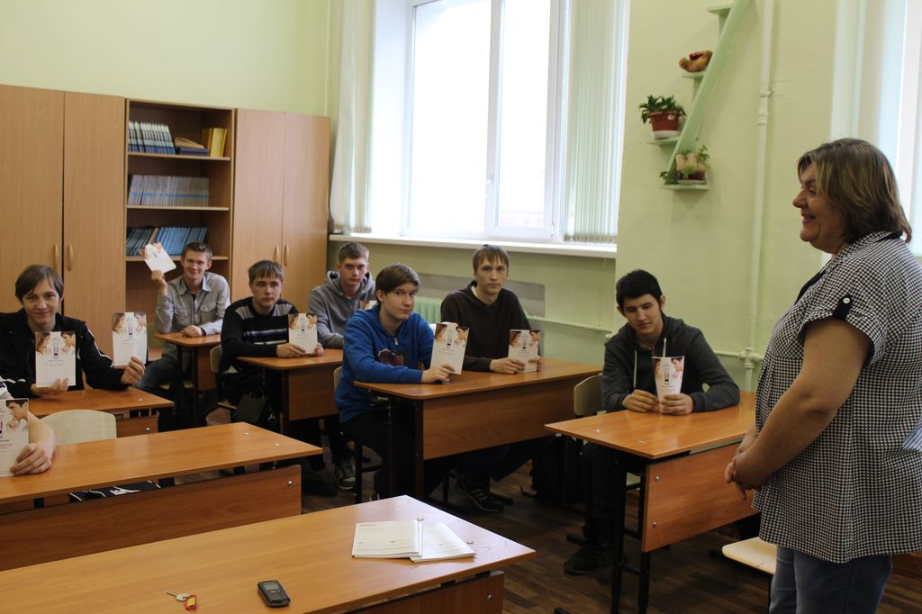 Воспитание здорового образа жизни является важнейшей составной частью воспитательной работы со студентами в Новосибирском техническом колледже им. А.И. Покрышкина. Большую роль в решении этих задач педагогам колледжа оказывают специалисты Новосибирского консультационно-диагностического Центра «Ювентус», которые в течение года проводят просветительскую и профилактическую работу в студенческих группах. Формы и тематика профилактической работы разнообразна: это круглые столы, беседы, диспуты, видео уроки. На днях в колледже специалисты Центра «Ювентус» провели для студентов 1 курса мероприятие, посвященное вопросам профилактики ВИЧ-инфекции. Мероприятие было приурочено ко Всемирному дню памяти жертв СПИДа. В конце встречи специалисты «Ювентуса» раздали студентам тетрадки и буклеты с информацией по вопросам профилактики ВИЧ-инфекции.