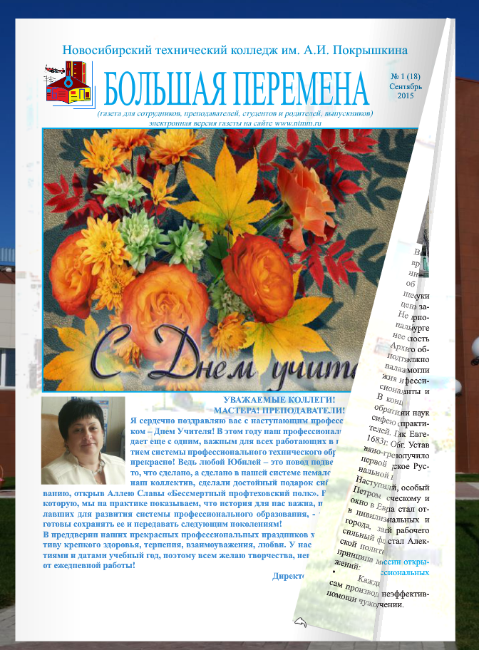 Редакция газеты нашего колледжа «Большая перемена» рада представить вам новый, первый в этом учебном году, выпуск нашей газеты. Много интересного материала мы готовим для вас!