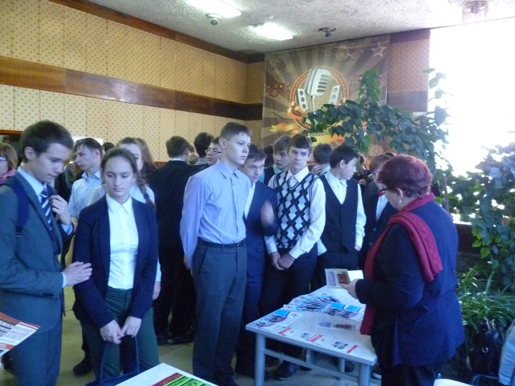 Присутствовали представители районного управления образования, службы занятости населения. Ребята с большим интересом воспринимали информацию о нашем колледже, задавали вопросы. Валентина Николаевна рассказала о богатой истории нашего учебного заведения, о Героях-выпускниках, в том числе о А. И. Покрышкине, Ю. С. Устинове и других.