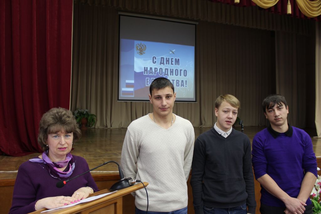 В нашем колледже прошли мероприятия, посвященные Дню народного единства, основная цель которых: формирование у студентов активной жизненной позиции, а также воспитание интереса к истории своей Родины. В библиотеке колледжа была открыта тематическая выставка литературы - «4 ноября – День народного единства». Выставка особенно заинтересовала студентов 2-го и 3-го курсов, так как они приняли участие в исторической викторине «День народного единства», которую проводила преподаватель истории Е.А. Трубачева. В группах 1-го курса были проведены классные часы - «В единстве наша сила». И завершающим аккордом всех этих мероприятий стала линейка, посвященная Дню народного единства, на которой Трубачевой Е.А. познакомила студентов колледжа с историей установления праздника, с историческими событиями и героями, связанными с этим праздником, сопровождалось это мероприятие интересной и яркой презентацией, которую подготовили студенты гр. С-411.