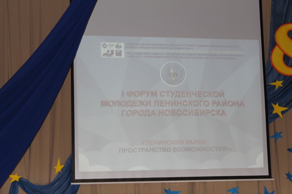 24 ноября в Новосибирском техническом колледже им. А.И. Покрышкина прошел I Форум студенческой молодежи Ленинского района города Новосибирска «Ленинский район - пространство возможностей». Инициатором проведения Форума стали отдел по делам молодежи, культуре и спорту администрации Ленинского района г. Новосибирска и МБУ «Молодежный центр «Зодиак». Форум проходил при поддержке комитета по делам молодежи мэрии г. Новосибирска и Новосибирского технического колледжа им. А.И. Покрышкина Мероприятие проводилось в целях создания условий для профессиональной, творческой и социальной самореализации студенческой молодежи.