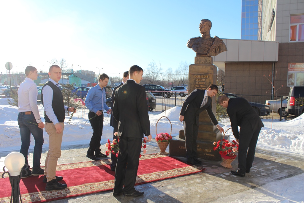 Под звуки метронома все собравшиеся почтили память погибших и навсегда ушедших от нас минутой молчания, а группа лучших студентов НТК им. А. И. Покрышкина возложила цветы к Бюсту Трижды Героя Советского Союза А. И. Покрышкина и мемориальной доске Константина Николаевича Зандина, установленным во дворе колледжа.