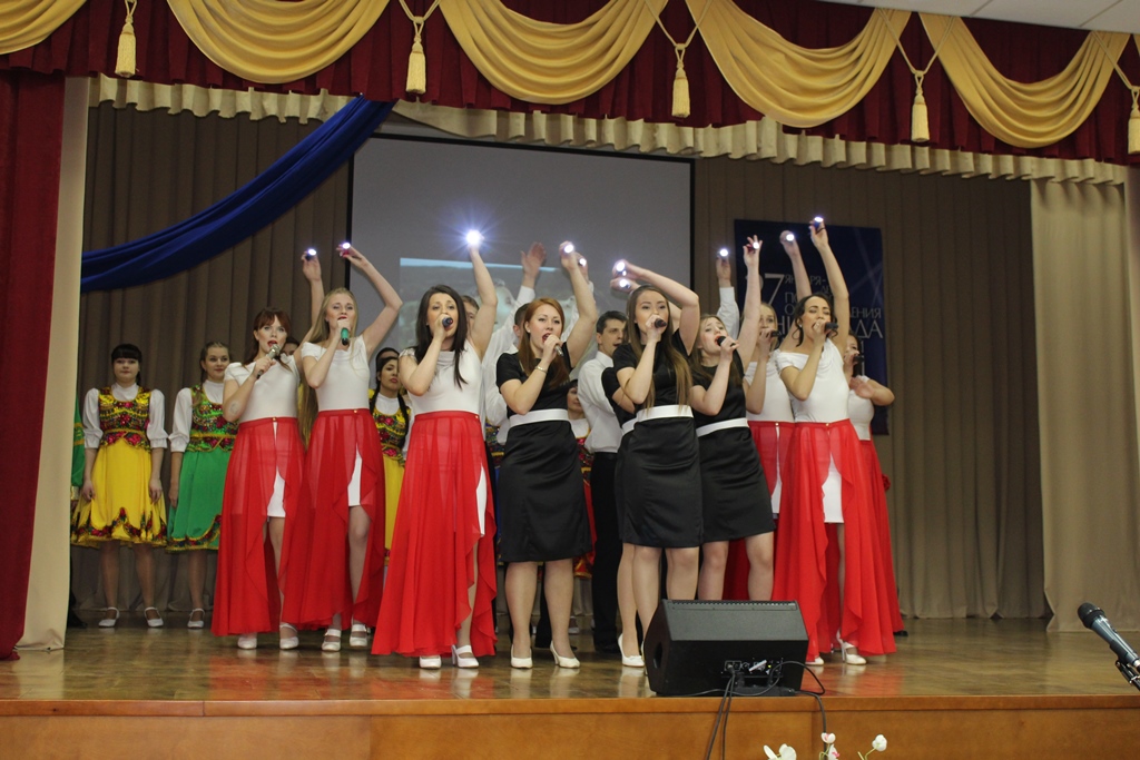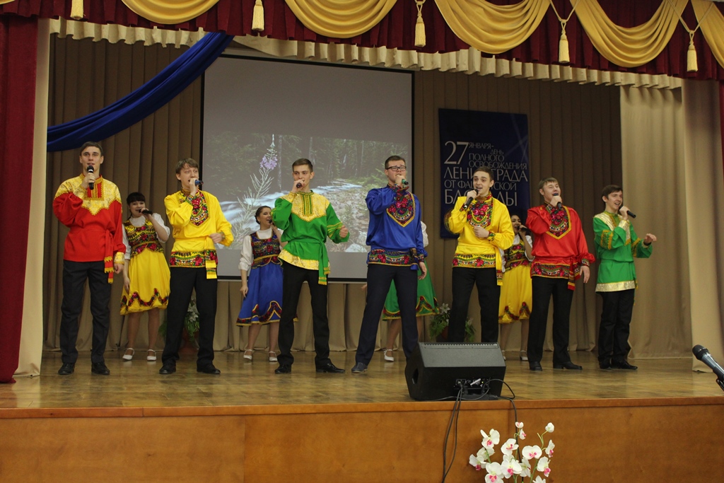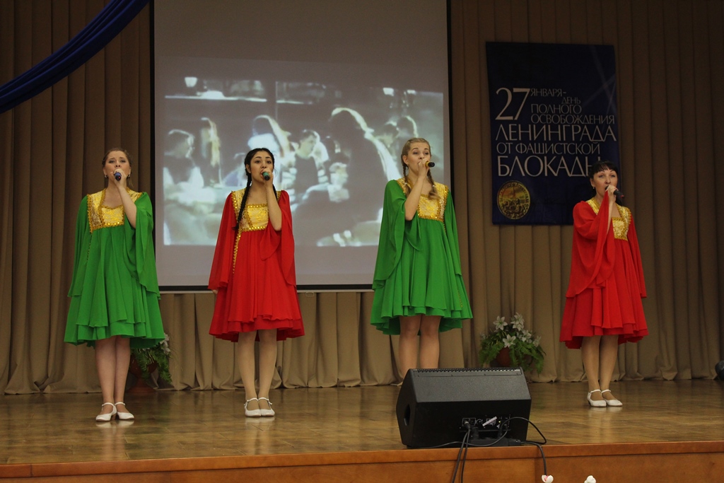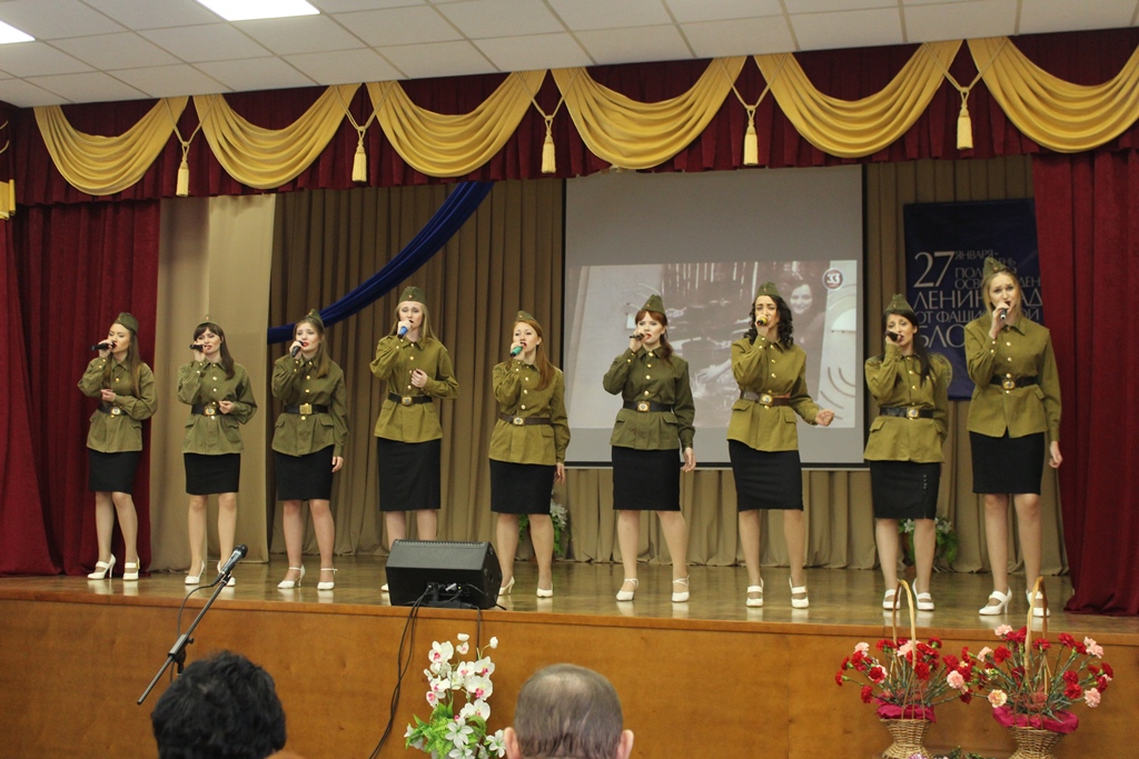 Концертные номера, подготовленные совместно театральной студией «33 кактуса» НТК им. А. И. Покрышкина (худ. руководитель замдиректора по УВР Елена Владимировна Степанова) и творческими коллективами Центра культуры учащейся молодежи, никого не оставили равнодушными. Песни о России, о ленинградках, о мире и войне – встречали бурными аплодисментами не только ветераны, но и представители студенческой и школьной молодежи. А ролевое прочтение отрывка из поэмы Ольги Берггольц, которое звучало и голосами студентов, и голосами преподавателей, и голосами ветеранов – поразило многих лиричностью, душевностью и своеобразным слиянием разных эпох, объединенных одним желанием – жить в мире и радости.