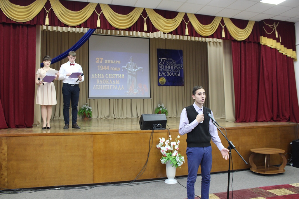 Приветствуя гостей, Галина Федоровна Талюкина, директор НТК им. А. И. Покрышкина, отметила: «Ровно тридцать лет назад Константин Николаевич Зандин заложил замечательную традицию – встречу блокадников в канун великой даты – годовщины снятия блокады Ленинграда. И это замечательно, что мы не смотря ни на какие времена и события мы собираемся здесь в канун этой даты, помним, чествуем наших дорогих ветеранов. Это очень здорово, что колледж стал для вас настоящим домом, о котором вы вспоминаете с теплотой, куда всегда приходите с удовольствием».
