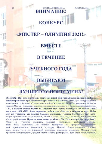 принято решение о проведении конкурса «Мистер – Олимпия 2021». Суть конкурса: ребята