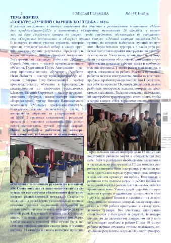 сти «Сварочные технологии» и «Сварка» прошел конкурс «Лучший сварщик колледжа-2021».