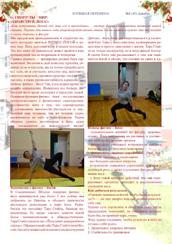 шего колледжа заняться ФИТНЕС-ЙОГОЙ в но- ный блог Тары с йога-советами, кулинарными ре-