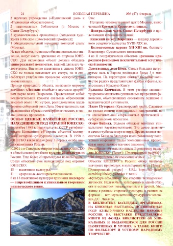 «Пулковская обсерватория»); · Историко-художественный центр Москвы, вклю-