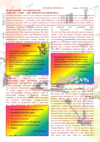«МЫСЛИ – СЛОВА – ДНК: ИНТЕРЕСНАЯ ЦЕПОЧКА!»