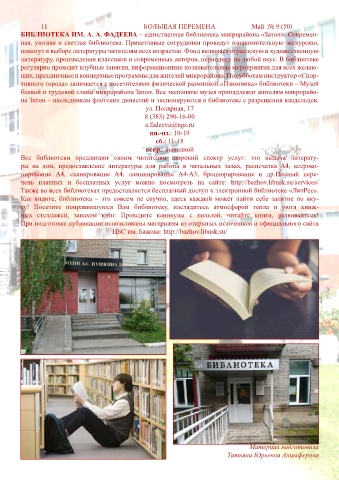 ная, уютная и светлая библиотека. Приветливые сотрудники проведут ознакомительную экскурсию,