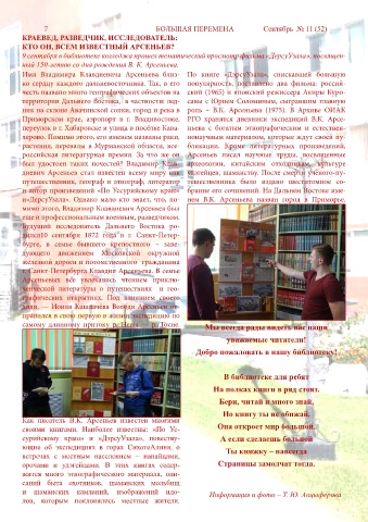 и«ДерсуУзала». Однако мало кто знает, что, по- нем В.К. Арсеньева назван город в Приморье.