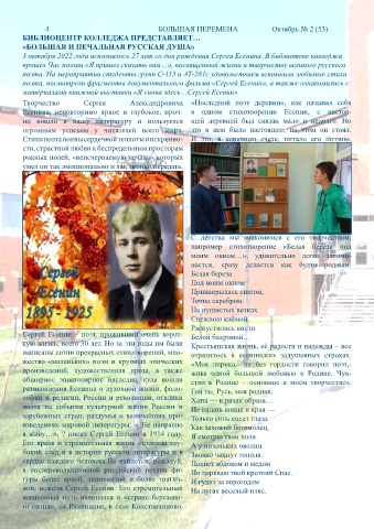 3 октября 2022 года исполнилось 27 лет со дня рождения Сергея Есенина. В библиотеке колледжа
