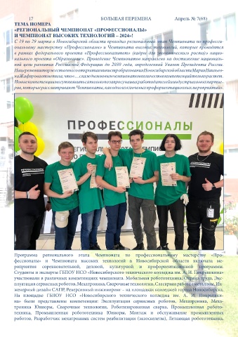 фессионалы» и Чемпионата высоких технологий в Новосибирской области включала ме-