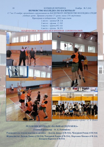 С 7 по 13 ноября проводились соревнования по БАСКЕТБОЛУ ПЕРВЕНСТВО КОЛЛЕДЖА СРЕДИ
